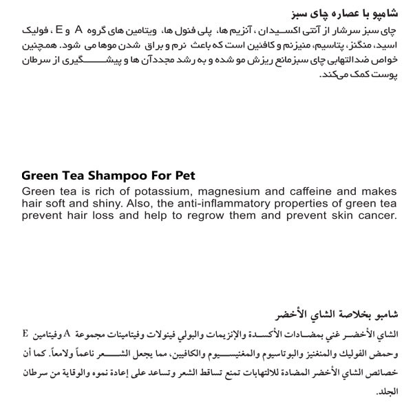 چای سبز سرشار از آنتی اکسیدان ، آنزیم ها، پلی فنول ها، ویتامین های گروه A و E ، فولیک اسید، منگنز، پتاسیم، منیزنم و کافئین است که باعث نرم و براق شدن موها می شود. همـچنین خواص ضدالتهابی چای سبزمانع ریزش مو شده و به رشد مجددآن ها و پیشگیری از سرطان پوست کمک میکند.
