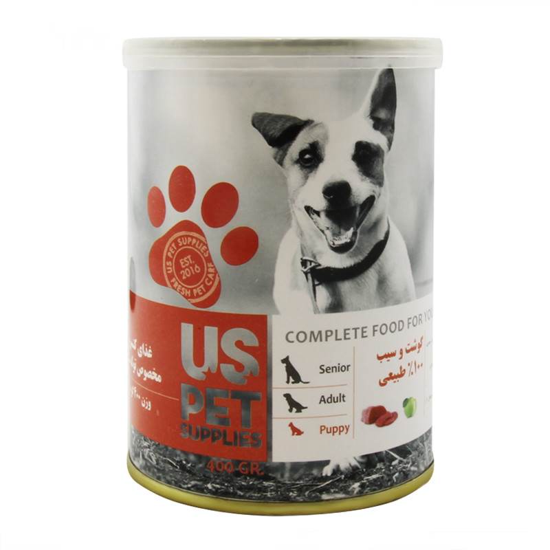 کنسرو توله سگ “یو اس پت” با طعم گوشت و سیب از طریق ویتامین های موجود در خود، باعث تقویت سیستم ایمنی حیوان و تامین هموگلوبین میشود.