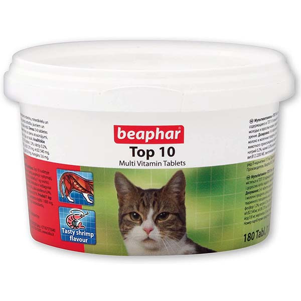 قرص مولتی ویتامین top10 سرشار از مواد معدنی و عناصر کمیاب مخصوص گربه مناسب بجه گربه تا گربه های مسن باعث افزایش و تقویت سیستم ایمنی بدن و همچنین افزایش سلامت و مقاومت استخوان ها و دندان ها میشود