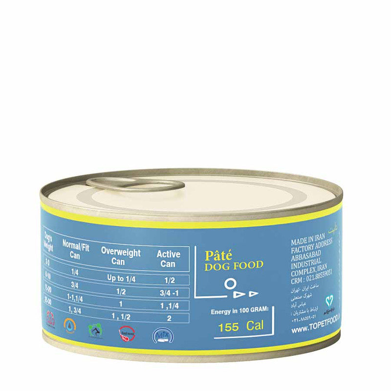 کنسرو پته سگ مدل مرغ شامل ترکیب میکس مرغ و آب مرغ و مواد افزودنی مجاز دیگر میباشد . دارای دو سال تاریخ انقضا از زمان تولید میباشد . پس از باز شدن در یخچال نگهداری شود