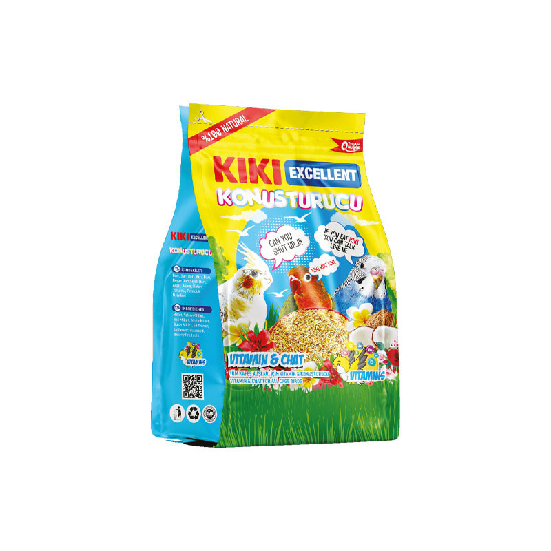مکمل آواز خوانی پرنده کیکی مدل VitaminChat وزن 150 گرم حاوی ویتامین ها و مواد معدنی مخصوص پرندگان زینتی سخنگو است و به صحبت کردن و آواز خوانی پرنده کمک می کند.