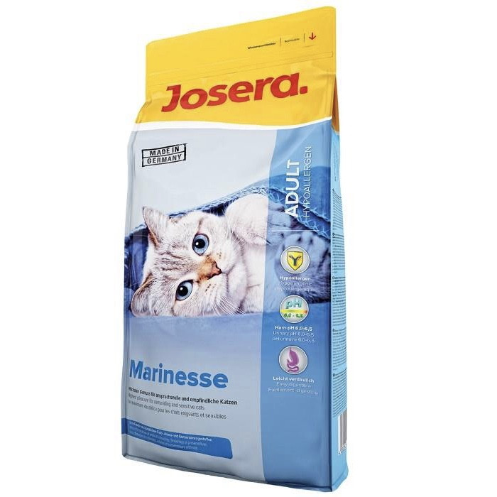 این غذای خشک حاوی ماهی سالمون مخصوص گربه بالغ است و حاوی مقادیر فراوان گوشت ماهی با طعمی بسیار مطبوع است، این غذا برای گربه های بالغ با دستگاه گوارش حساس مناسب است و حاوی گوشت ماهی سالمون، برنج و سیب زمینی با قابلیت هضم بالا است. این غذا همچنین دارای مقادیر فراوان اسیدهای چرب امگا 3 و امگا 6 برای درخشندگی موی گربه است. همچنین این غذا کم کالری بوده و بسیار زود هضم است.