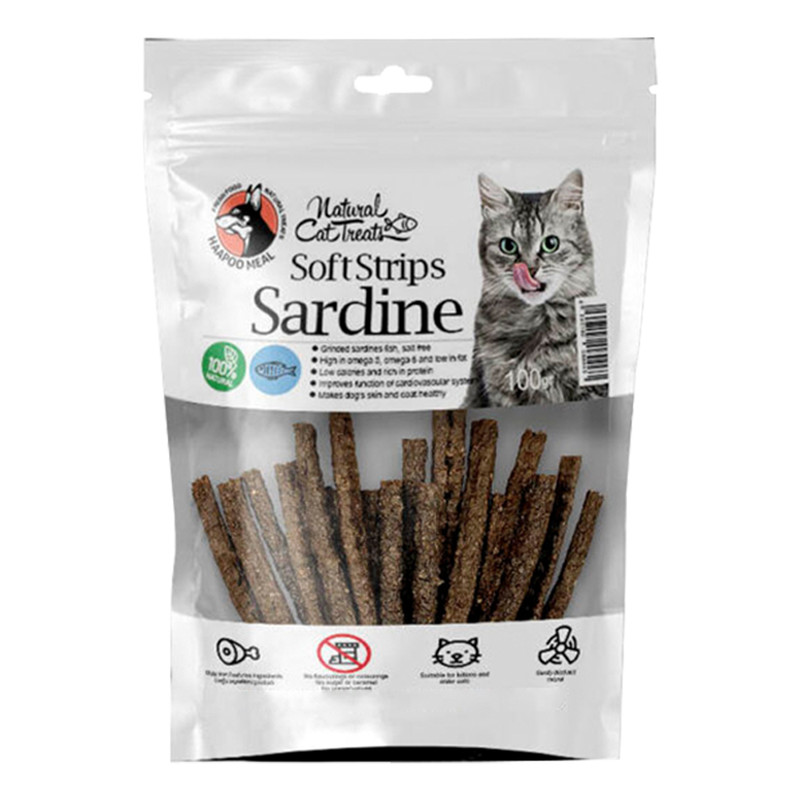 غذای تشویقی گربه هاپومیل مدل Sardine Soft Strips وزن ۱۰۰ گرم