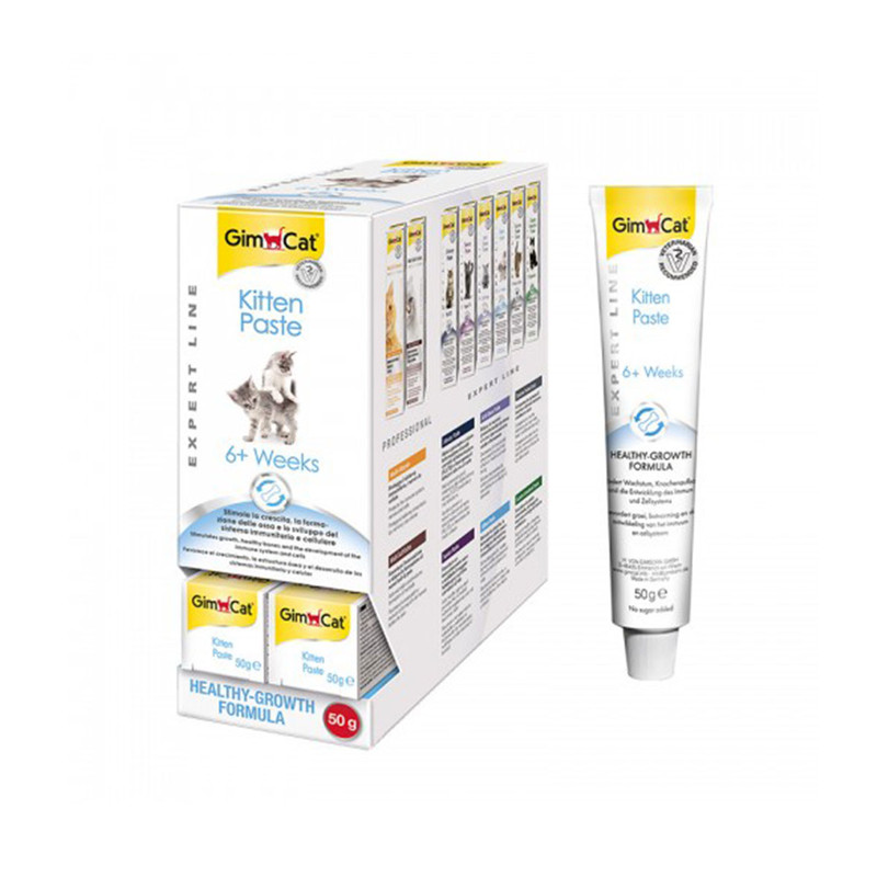 اهمیت تغذیه در دوران رشد فوق العاده بالا است. هر گونه کوتاهی در این دوره از زندگی، می تواند سبب عواقب جبران ناپذیری در بزرگسالی باشد. به همین دلیل پیشنهاد می شود برای بچه گربه ها حتما از غذای کامل و انواع مکمل های مناسب استفاده کنید. خمیر مکمل جیم کت ویژه بچه گربه های بالای 6 هفته است. این محصول رشد و استحکام استخوان ها را تقویت کرده و سبب بهبود بینایی حیوان می شود. این محصول دارای فرمولاسیونی است که رشد متعادل را ایجاد می کند و نسبت بهینه کلسیم به فسفر را برای تقویت و رشد استخوان ها تنظیم میکند. این محصول با ویتامین B12، عناصر کمیاب و مواد معدنی غنی شده است که سبب حمایت از عملکرد سیستم ایمنی خواهند شد. همچنین وجود مالت و روغن ها سبب دفع موهای بلعیده شده می شود و برای سیستم گوارشی حیوان بسیار مفید است. خمیر جیم کت حاوی تورین است که عملکرد قلب را تقویت می کند و برای سلامتی بسیار مفید است. همچنین تورین بینایی بچه گربه ها را بهبود بخشیده و ماده ای بسیار مفید و ضروری است. از دیگر مواد غذایی مفید به کار رفته در تولید این مکمل، زرده تخم مرغ است که اسید آراشیدونیک را تامین می کند. این ماده یک اسید چرب ضروری است که بر کیفیت و سلامت پوست و مو تاثیر گذار است. از هفته ششم، می توانید از خوراک استفاده کنید. بلافاصله پس از مصرف غذا، 6 سانتی متر (هر 1 سانتی متر معادل 0.5 گرم است) از این خمیر را به گربه خود بدهید. همچنین می توانید آن را با غذا مخلوط کنید. برای مصرف خمیر باید هم دمای اتاق باشد. در تولید این محصول از مشتقات گیاهی، روغن ها و چربی ها (روغن ماهی 4%، روغن بذر کتان 4%)، گوشت و مشتقات حیوانی، مخمر ها، تخم مرغ و فرآورده های آن (پودر تخم مرغ 3%)، ماهی و مشتقات آن و جلبک ها استفاده شده است.