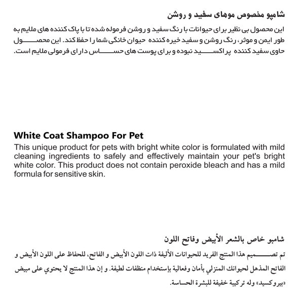 شامپو سگ و گربه کاکو مدل WHITE COAT حجم 500 میلی لیتر