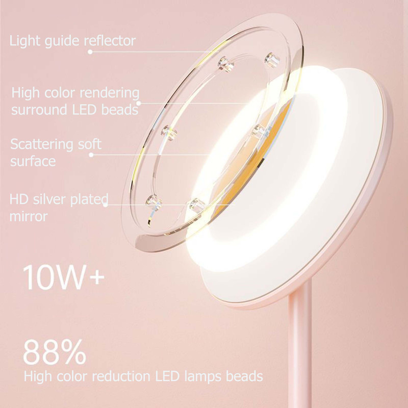 داشتن یک آینه مناسب برای انجام کارهایی مانند اصلاح آقایان و بانوان و همینطور گذاشتن انواع لنز و چک کردن آرایش صورت بسیار مورد استفاده است که میتوانید با استفاده از آن آرایش حرفهای و دقیقی داشته باشید. یک آینه با ظاهری بسیار زیبا برای پرداختن به زیبایی خود؛ این به آن معنی است که باید آینهای که شما تهیه میکنید، در اوج شفافیت و در عین حال زیبایی باشد. این آیینه دارای چراغ LED است که سه رنگ نور را تولید میکند و شدت آنها هم قابل تنظیم است. این محصول قابل شارژ بوده و ظرفیت باتری داخلی آن 2600 میلیآمپر است که برای استفاده بیش از 24 ساعت کافی است. این آینه از مواد شیشهای نوری با کیفیت بالا با روکش نقرهای ساخته شده که بازتاب بهتری نسبت به آینههای سنتی به آن میدهد. این آینه دارای منبع نور مخصوص به خود با روشنایی قابل تنظیم و شاخص رندر رنگ بالا، بدون سایه، تابش خیره کننده است که به شما امکان میدهد آرایش را با سهولت و دقت بیشتری انجام دهید. اتصال سطح آینه و شفت کاملا منعطف است و به راحتی میتوان آن را از 0 تا 90 درجه بالا و پایین تنظیم کرد. علاوه بر آن، به واسطه طراحی آن، قابل حمل است و به راحتی از هم جدا و یا متصل میشود.البته این آینه توانایی این را هم دارد که در دستشویی و روی میز آرایش شما در اتاق خواب تکمیلکننده هارمونی دکوراسیون اتاق شما باشد. یک دکوراسیون مدرن با حضور این آینه رومیزی زیبا روی میز آرایش، میتواند به اوج تکامل خود برسد.