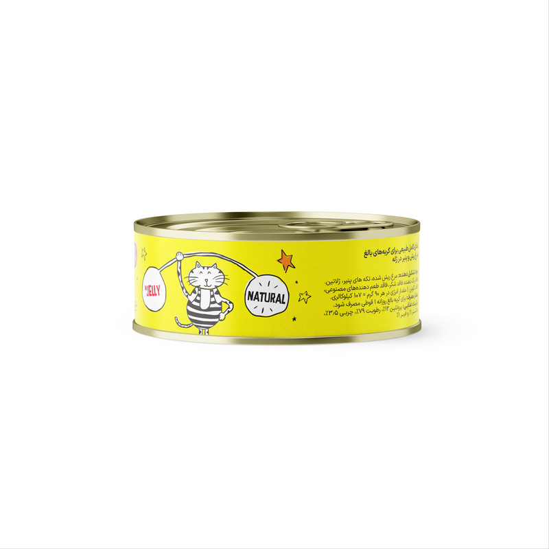 کنسرو غذای گربه با طعم مرغ ریش و پنیر در بستهبندی ۹۰ گرمی، یک غذای کامل و متعادل برای گربههای بالغ فرموله شده است. این محصول ترکیبی از پروتئین مرغ ریش (بافت لطیف) و پنیر چدار کملاکتوز (منبع طبیعی کلسیم و فسفر) را در بافت ژلهای ارائه میدهد. پنیر به میزان کنترلشده (