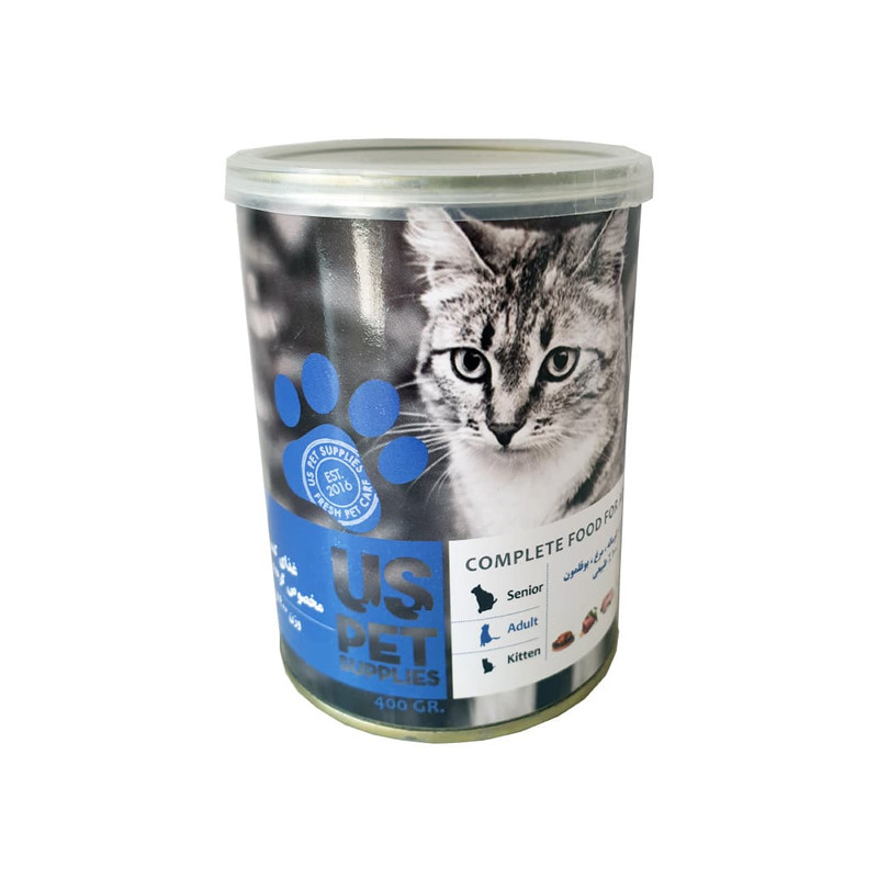 کنسرو یو اس پت گربه مدل گوساله، مرغ، بوقلمون وزن 400 گرم
