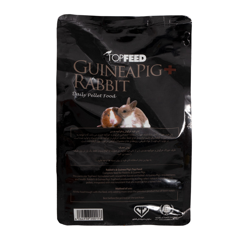تاپ فید با بهره گیری از تجربه و نتیجه بررسی های محققان خود اقدام به تولید غذایی کامل غنی با ویتامین ها، موادمعدنی و سایر مواد مغذی و مورد علاقه خوکچه و خرگوش نموده است.