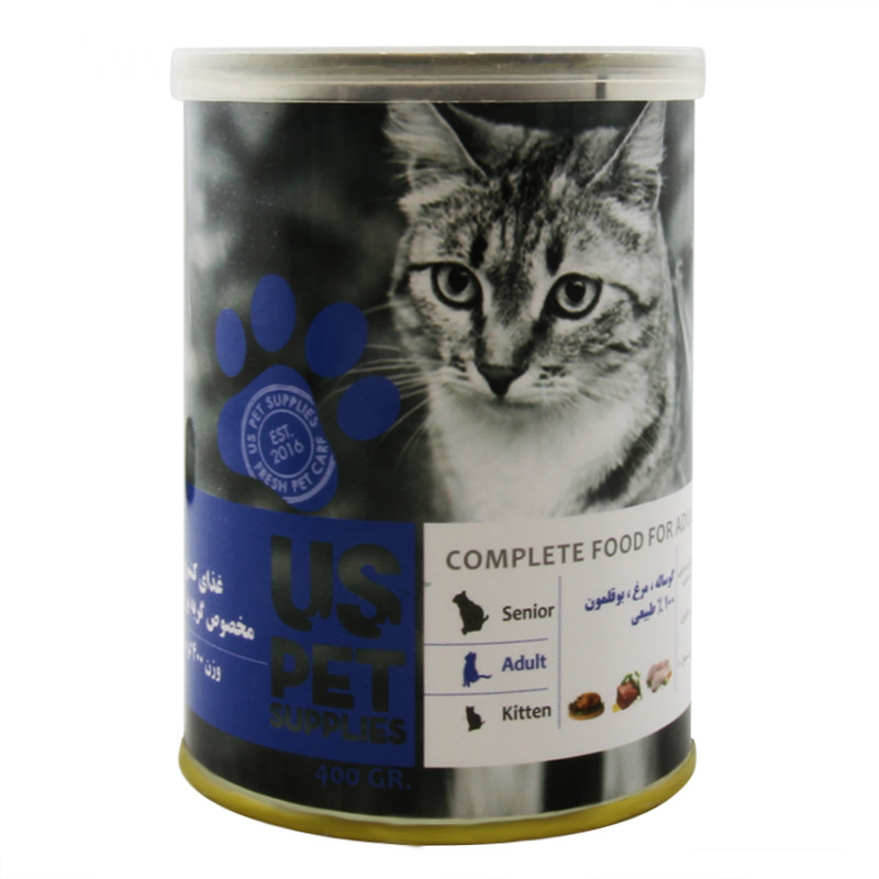 کنسرو گربه بالغ “یو اس پت” با طعم گوشت مرغ، گوساله و بوقلمون از طریق ویتامین های موجود در خود، باعث تقویت سیستم ایمنی حیوان میشود.