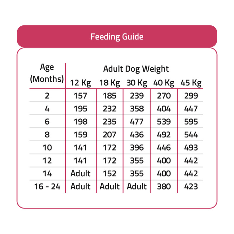 + رشد مطلوب: این محصول حاوی فرمولاسیون غنی از پروتئین های حیوانی بوده که انرژی مورد نیاز جهت رشد سالم و بنیه ای قوی برای سگ های در حال رشد را فراهم می نماید.