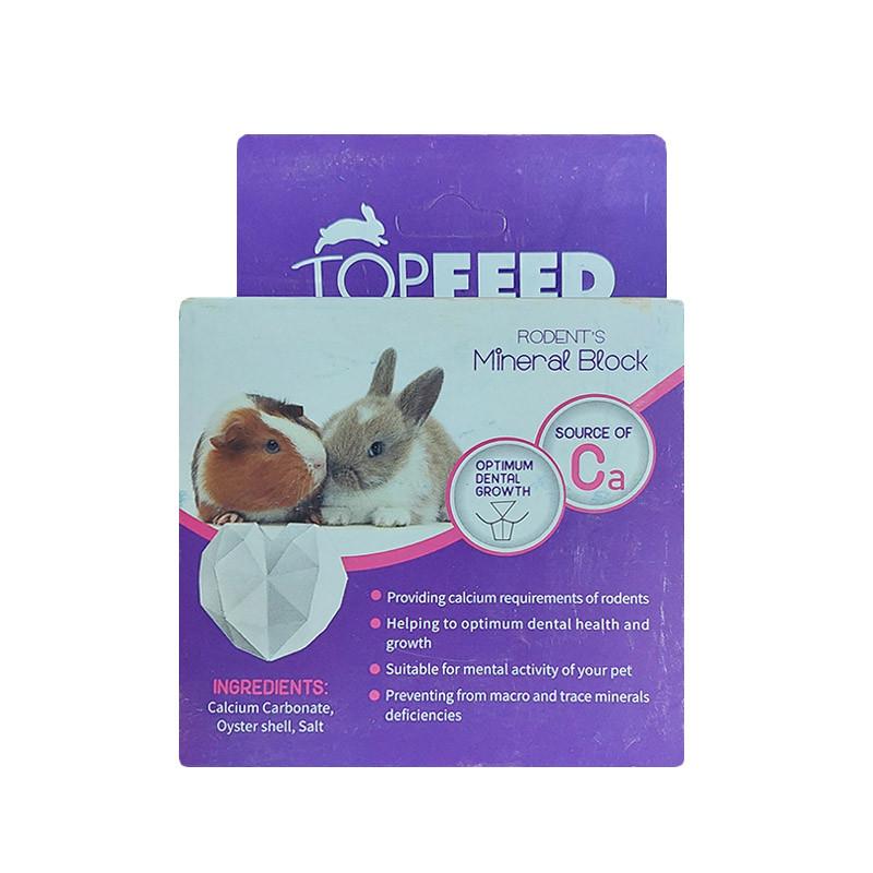 سایر توضیحات : - بلوک معدنی جوندگان تاپ فید - سنگ کلسیم مخصوص جوندگانی مانند خرگوش، خوکچه هندی و همستر - سرشار از کلسیم - کمک به استحکام دندان‌های جونده - غنی شده با ویتامین ها و مواد معدنی - حاوی کربنات کلسیم، صدف دریایی و نمک