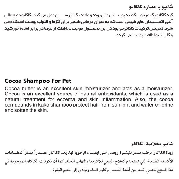 شامپو سگ و گربه کاکو مدل cocoa حجم 800 میلی لیتر
