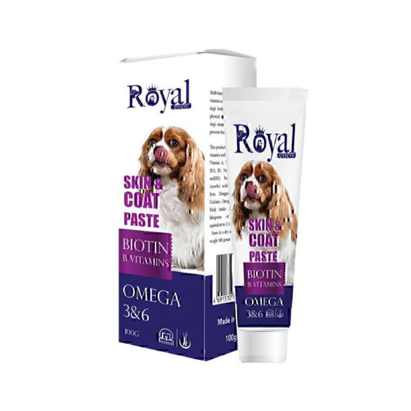 خمیر تقویت پوست و موی سگ رویال کوکو 100 گرمی حاوی ویتامینهای گروه B (شامل B3، B2 و B5) و بیوتین است که به حفظ سلامت پوست و مو، درخشان شدن پوشش مویی و کاهش ریزش مو کمک میکند. همچنین، این خمیر حاوی زینک و ترکیبات طبیعی است و طعم دلپذیری برای سگها دارد.