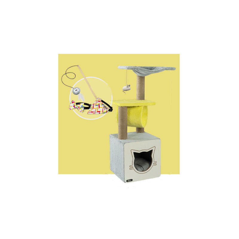 درخت گربه نیناپت دارای موش حاوی کت نیپ و گوله پشمالوی فنر دار نیز هست.درخت گربه نیناپت یک خانه بسیاز جذاب برای پشمالوهای دوست داشتنی شماست.این محصول با کمترین تکان بعد از مونتاژ یک مکان مطمئن و قابل اعتماد برای گربه ی شماست.